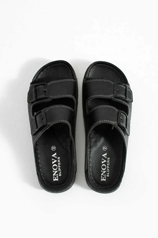 Erkek Deri(SUNİ) Ortopedik Rahat Taban Ayarlanabilen Tokalı Dikişli Şık Dışarı Içeri Erkek Terliği