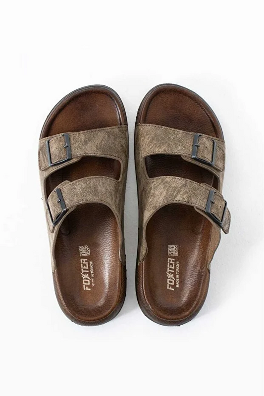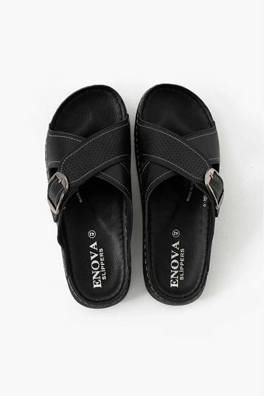 Erkek Deri(SUNİ) Ortopedik Rahat Taban Ayarlanabilen Tokalı Dikişli Şık Dışarı Içeri Erkek Terliği
