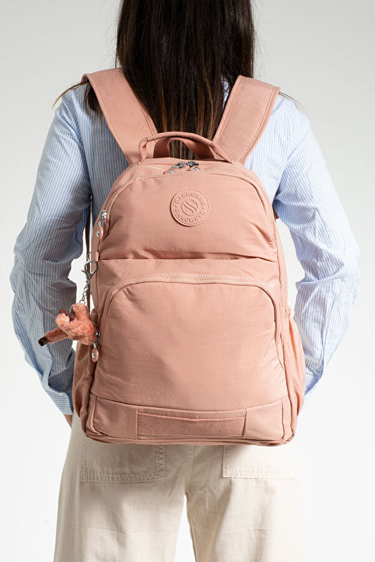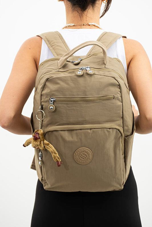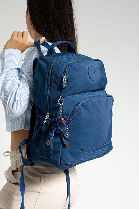 Sağlam Suya Dayanıklı Krinkıl Kumaş Çok Gözlü Orta Boy Laptop-Okul Ve Sırt Çantası