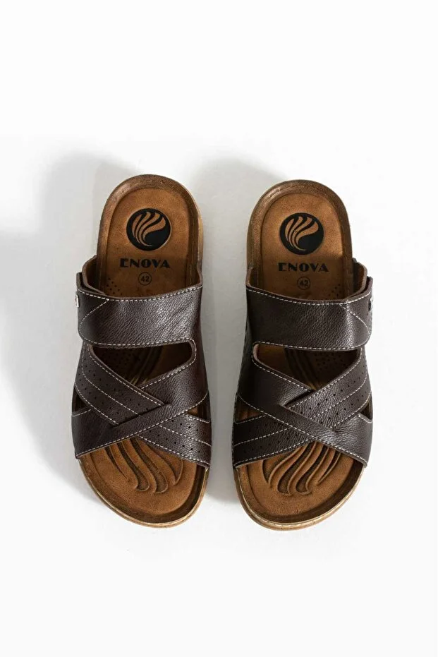 Erkek Deri (SUNİ) Ortopedik Cırtlı Ayarlanabilen Dikişli Rahat Şık Dışarı Içeri Erkek Terliği
