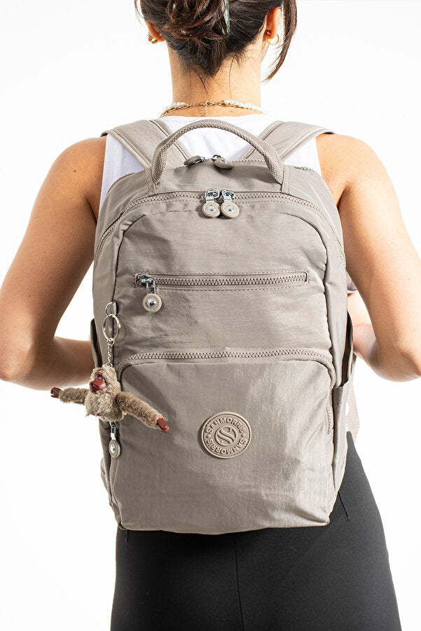 Unisex Suya Dayanıklı Krinkıl Kumaş Çok Gözlü Orta Boy Koyu Laptop Okul Ve Sırt Çantası